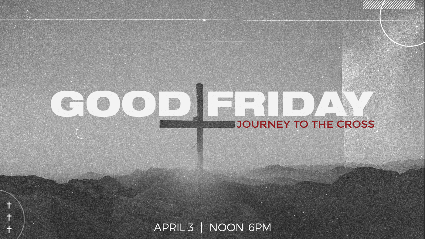 On Good Friday, we invite you to pause and reflect on what Jesus did for us on the cross. We will be hosting a self-guided open house with various prompts of reflection for you to walk through at you own pace. There will be scripture readings, visuals, and more throughout the building. You can go through in about 30 minutes or linger as long as you would like - the point is to remain in a meaningful, prayerful posture of reflection on the sacrifice Jesus made for you personally on the cross. You definitely do not want to miss it!